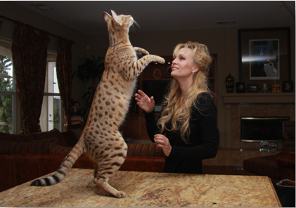 4. A Tall Tale – In 2010 a Savannah cat named “Scarlett’s Magic” from California was deemed the world’s tallest domestic cat standing 18 inches “shoulder to toe.” Savannah cats are a cross between an African Serval cat and a domesticated breed. They are known for their energetic personalities and dramatic black-spotted coats.
